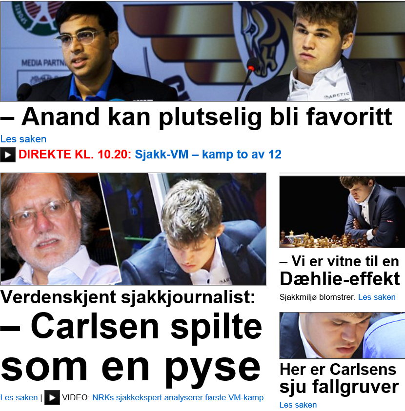 Rubrikerna nedan från NRK:s website efter första partiet.