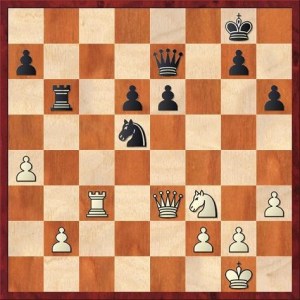 Svarts springare på c4 har gafflat vits dam och torn. Hur räddar sig vit?