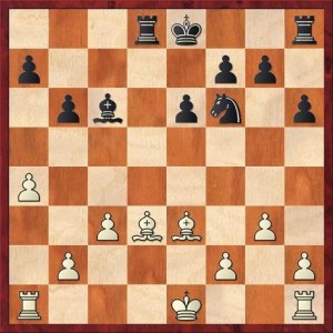 Svart har gjort en avdragare med Ld7-c6. Både vits torn på h1 och löparen på d3 är hotade.