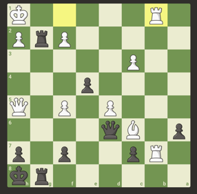 Vit har just spelat Tfb1, i nästa drag blir det det tornbyte på b8 och då är vits merpjäs vinnande.